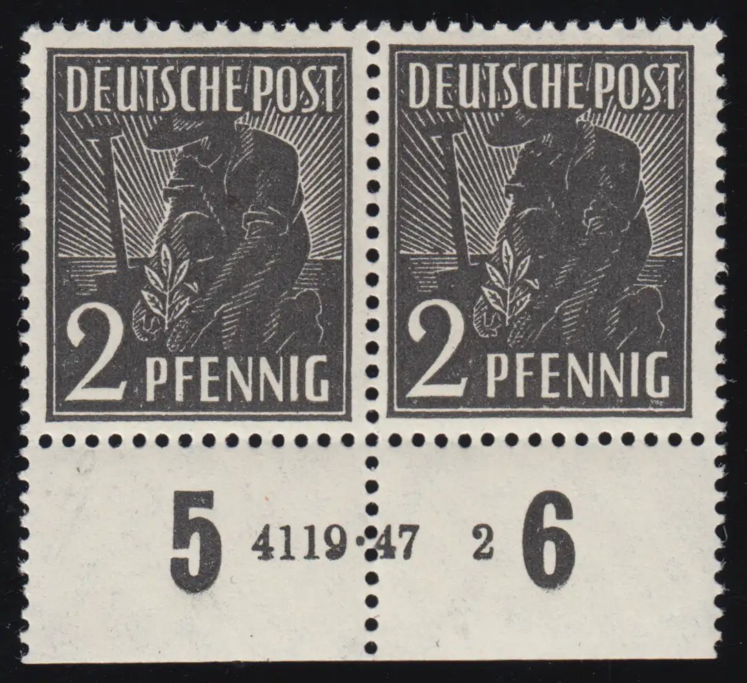 943 Kontrollrat II 2 Pf Randpaar mit HAN 4119.47 2, ungefaltet postfrisch **