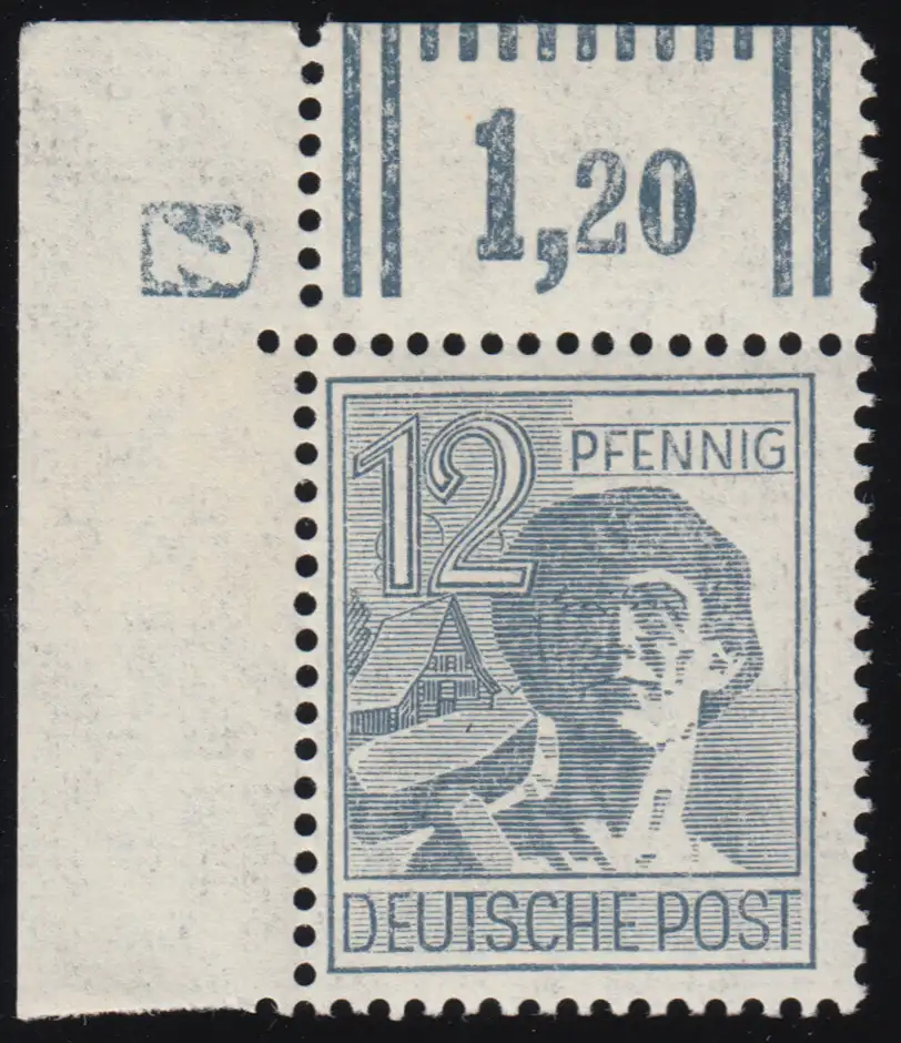 947DZ Arbeiter 12 Pf Ecke oben links mit DZ 2 negativ über Feld 1, postfrisch **