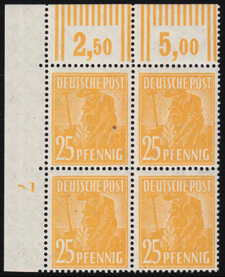 952DZ Pflanzer 25 Pf Eckrand-Vbl mit Druckerzeichen 7 positiv, postfrisch **