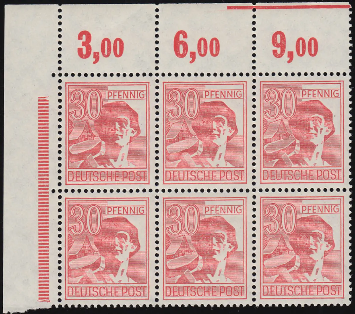 953 POR Kontrollrat II 30 Pf - Plattendruck Eck-Sechser o.l. durchgezähnt, **
