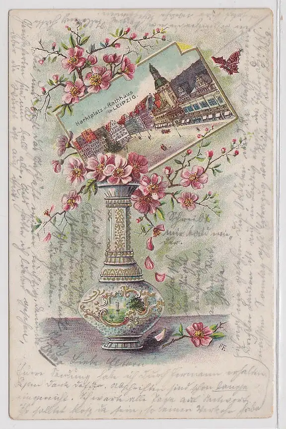 96961 Blumenvasen Ak Leipzig Marktplatz mit Rathaus um 1900