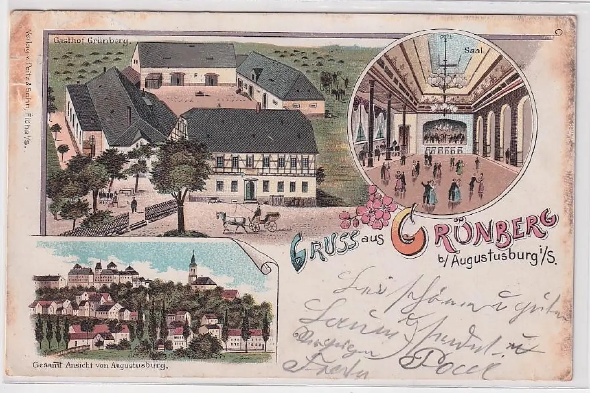97616 Ak Lithographie Gruss aus Grünberg bei Augustusburg in Sachsen 1899
