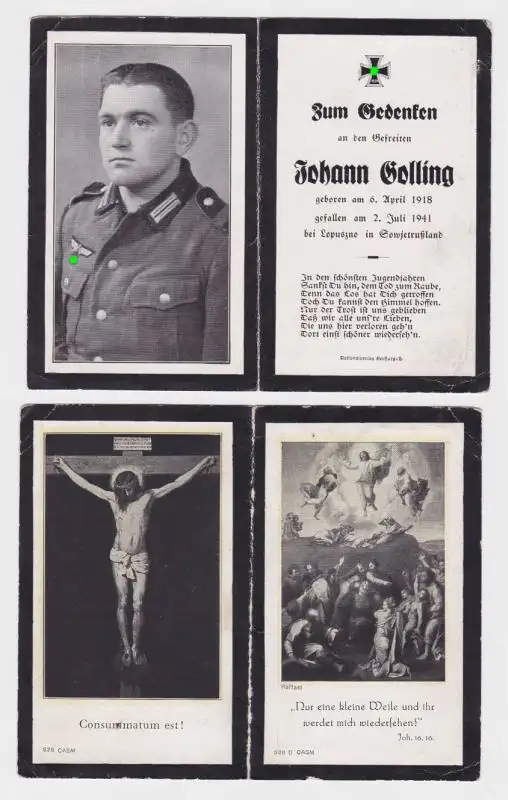 97676 Sterbebild WK2 Gefreiter gefallen 1941 bei Lopuszno in Sowjetrussland