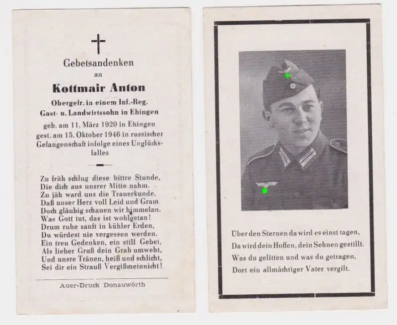 98033 Sterbebild WK2 gestroben in russischer Gefangenschaft Ungl?cksfall 1946