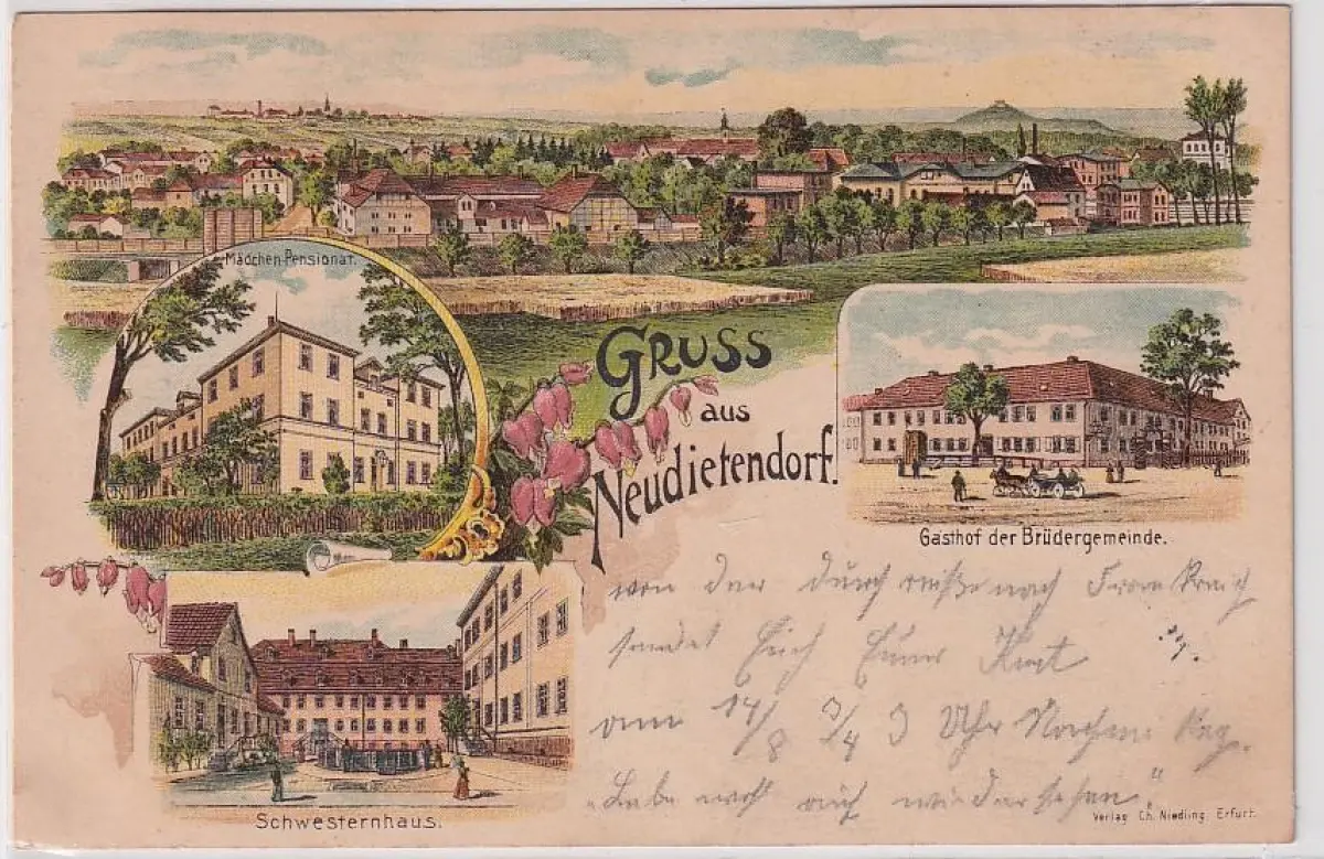 98449 Ak Lithographie Gruss aus Neudietendorf Gasthof usw. 1914