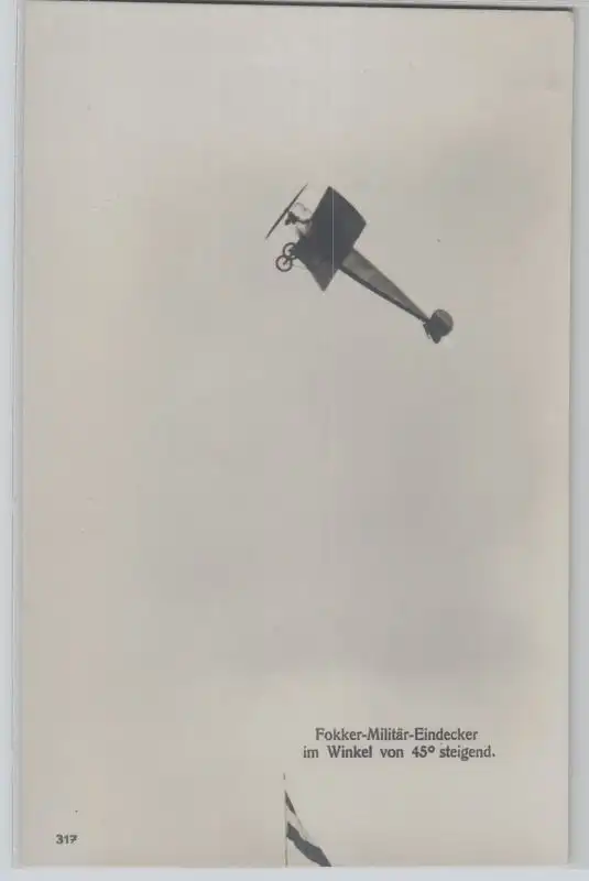 98511 Ak Fokker Militär Eindecker im Winkel von 45° steigend um 1915