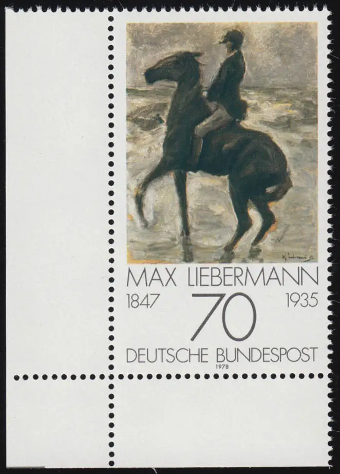 987II Impressionismus 70 Pf Liebermann ** Ecke u.l. mit PLF II Flecken am Bein