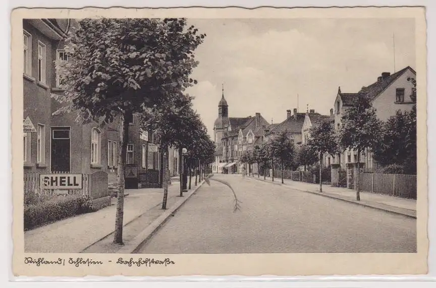 99500 Ak Ruhland in Schlesien Bahnhofstraße mit Shell Reklame 1935