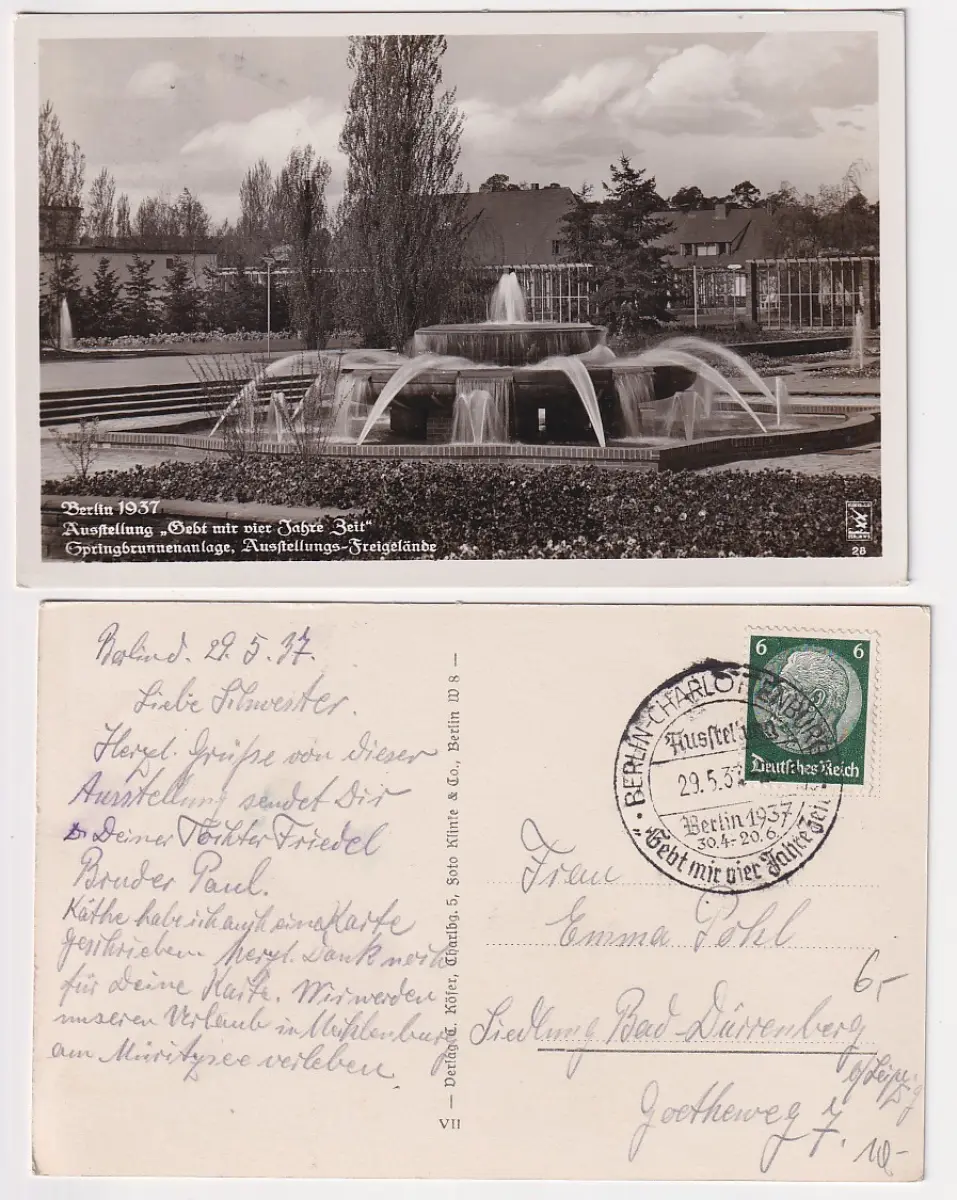 99795 Ak Berlin 1937 Ausstellung "Gebt mir vier Jahre Zeit" Springbrunnenanlage