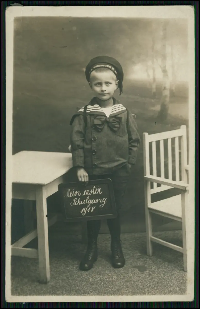 9x Foto AK Mein erster Schulgang 1918 - Junge Matrosenanzug Mütze Weddigen u. a.