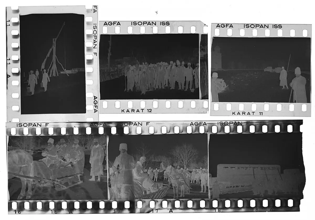 9x Original Negativ - 4x3,5cm - Wehrmacht Soldaten - Ostfront Pelzmützen Bauern