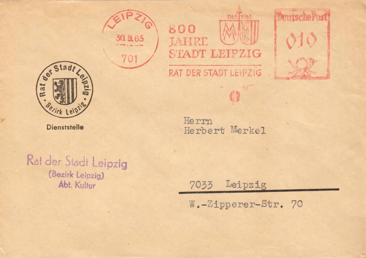 Stempeldaten: Leipzig, 701, 30.9.65