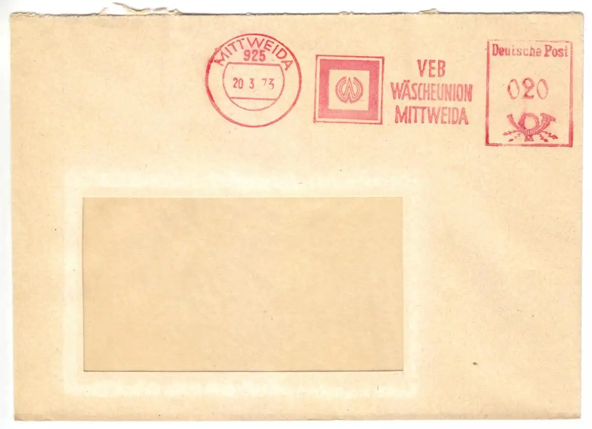 AbsenderfreistempelVEB Wäscheunion Mittweida