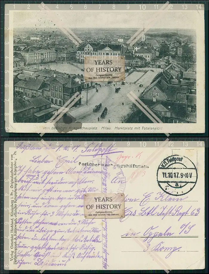 AK 1. WK Feldpost Mitau Marktplatz vom östlichen Kriegsschauplatz M2023-05-19-134AK 1. WK Feldpost Mitau Marktplatz vom östlichen Kriegsschauplatz