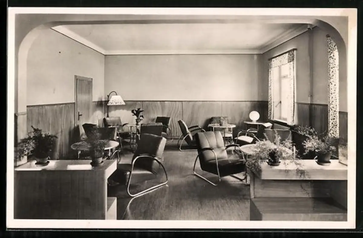 AK 12ième Regiment de Cuirassiers, Le foyer, Salle de lecture, Stühle im Bauhaus-Stil