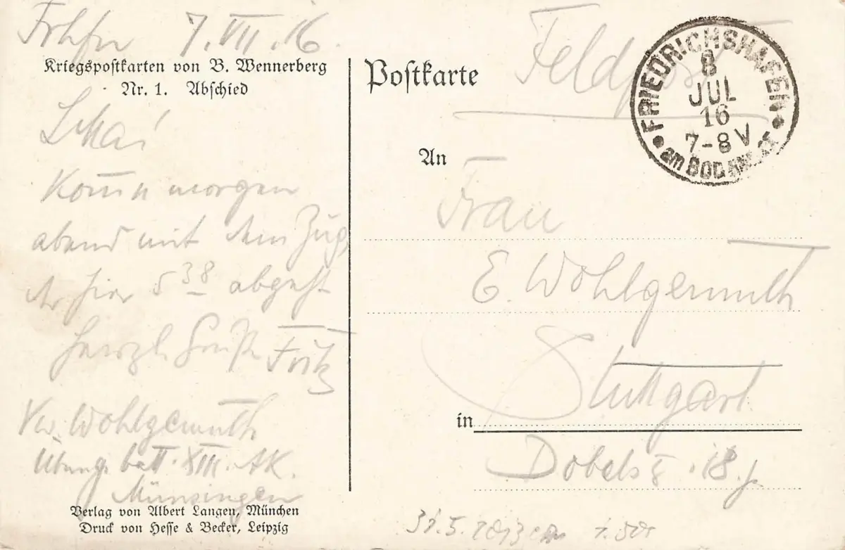 Motiv: Abschied / Ulan / Soldat / Familie / Frau