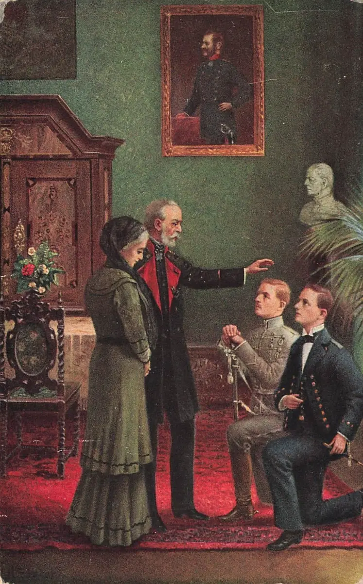 AK 1.WK Abschied vom Elternhaus R. Elster ungelaufen Patriotika Postkarte