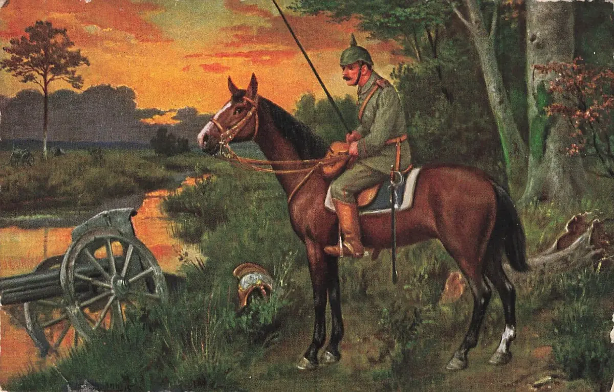 Motiv: Auf Vorposten / Soldat / Pferd / Geschütz
