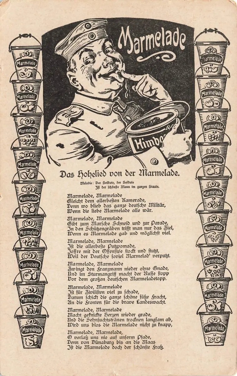 AK 1.WK Das Hohelied von der Marmelade Soldat 1916 gelaufen Patriotika Postkarte