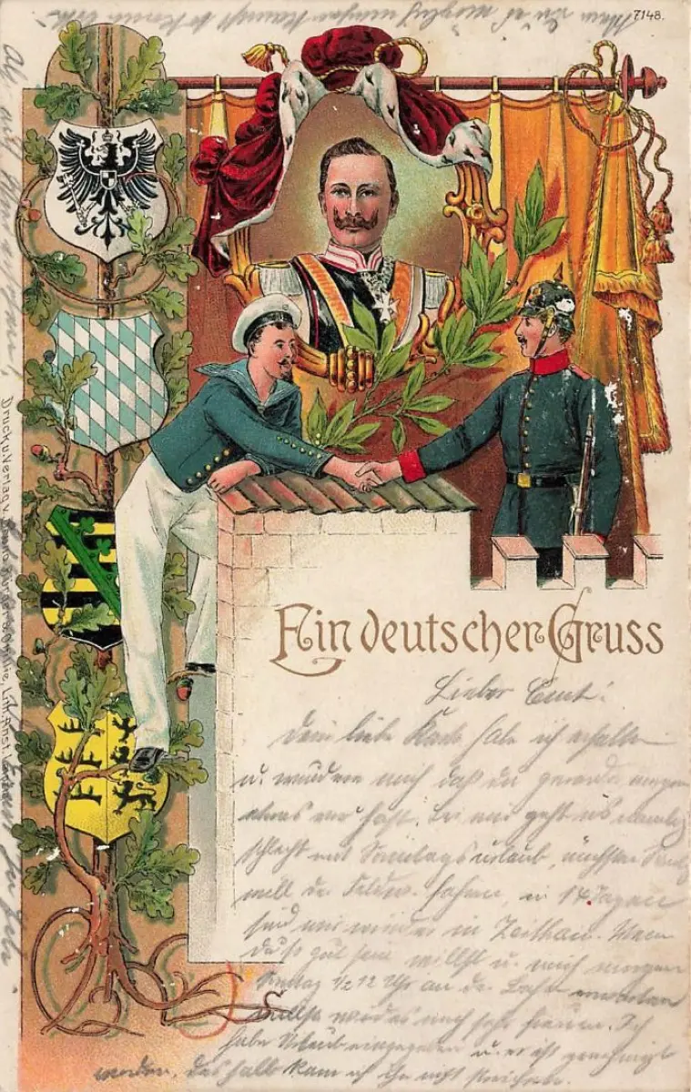 Motiv: Deutscher Gruss / Wappen / Portrait / Kaiser Wilhelm II