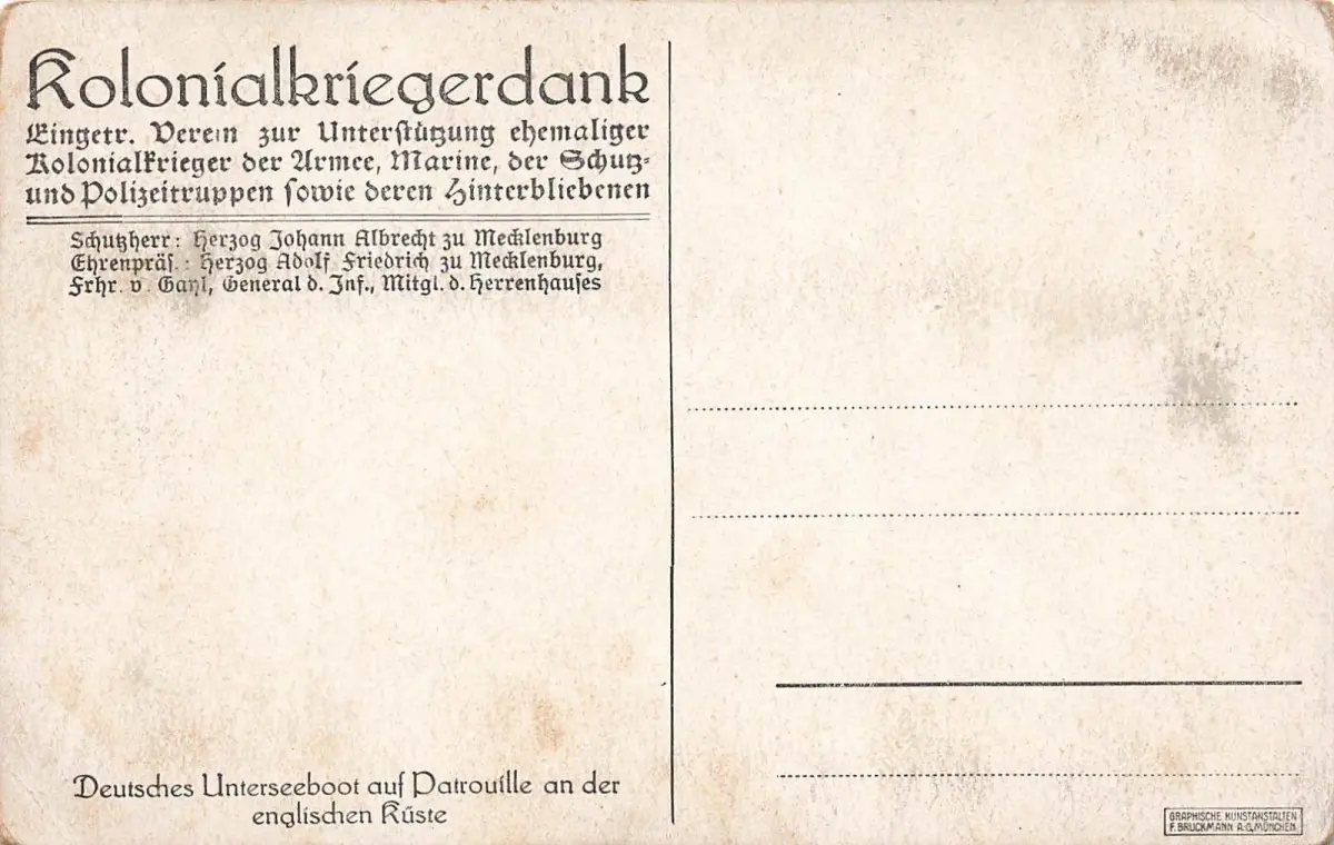 Motiv: Deutsches Unterseeboot / Patrouille / Kolonialkriegerdank