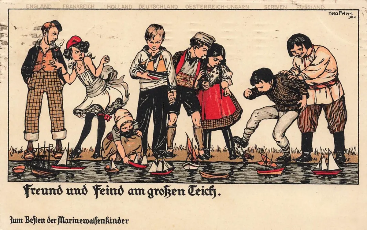 AK 1.WK Freund und Feind am großen Teich 1918 gelaufen Patriotika Postkarte