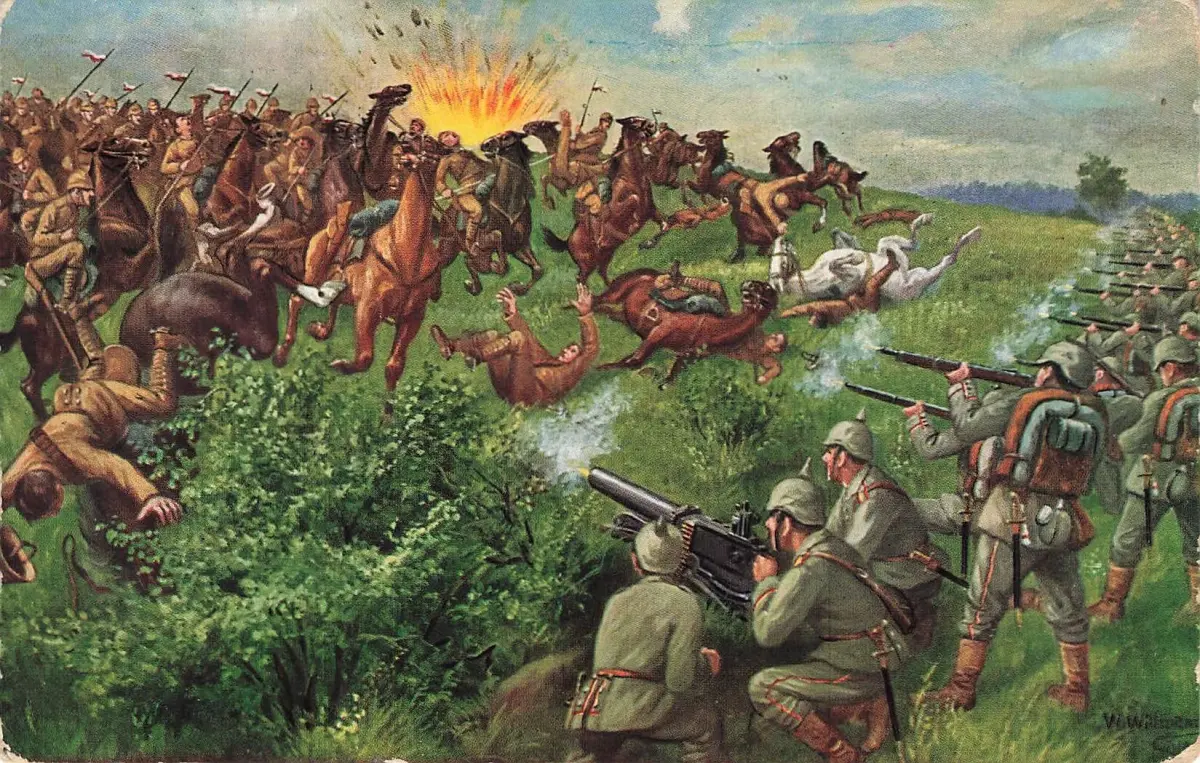 Motiv: Kampf gegen Engl. Kavallerie / Soldaten / Maschinengewehr