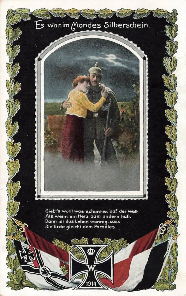 Motiv: Mondes Silberschein / Soldat / Frau / EK2 / Spruchkarte