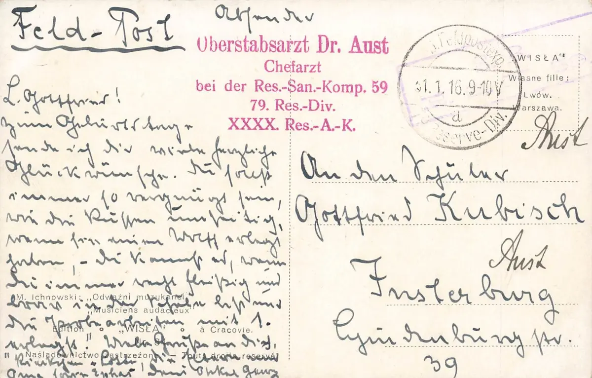 AK 1.WK Mutige Musiker 1916 gelaufen Patriotika Postkarte