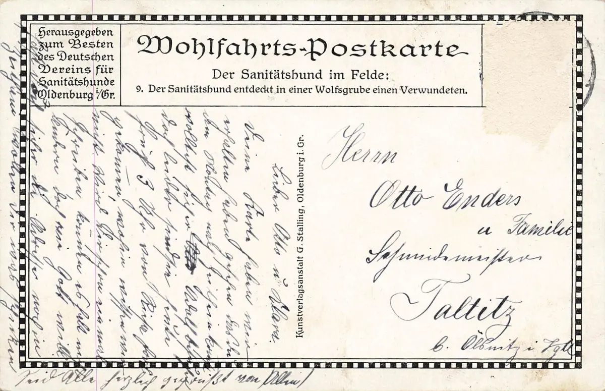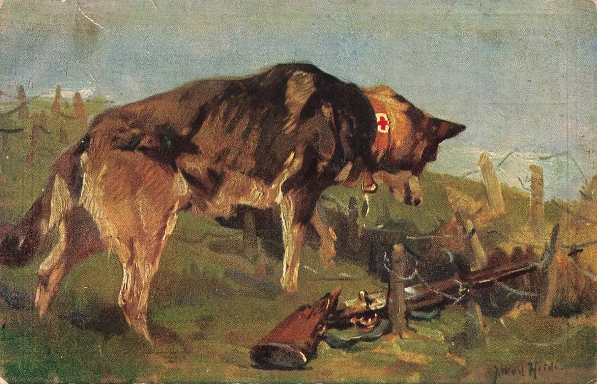 AK 1.WK Sanitätshund entdeckt Verwundeten Wolfsgrube gelaufen Patriotika