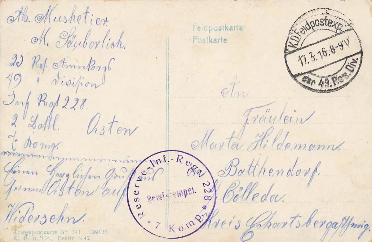 Rückseite: gelaufen 1916