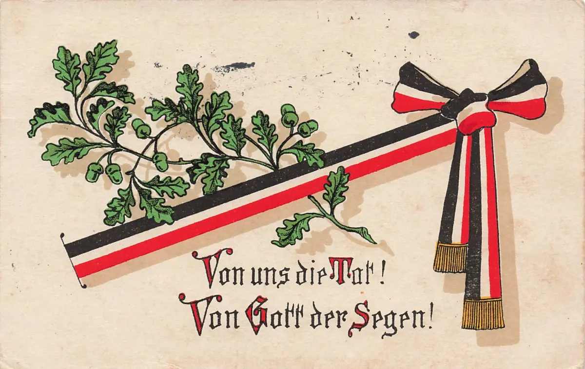 AK 1.WK Spruchkarte Von uns die Tat! Reichsfahne 1915 Patriotika Postkarte