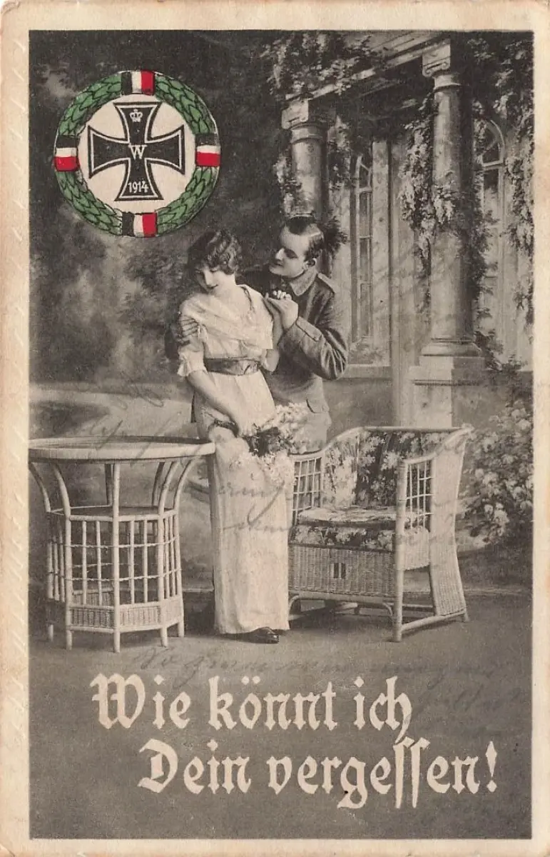 AK 1.WK Wie könnt ich deins vergessen Soldat Frau EK2 1915 Patriotika Postkarte