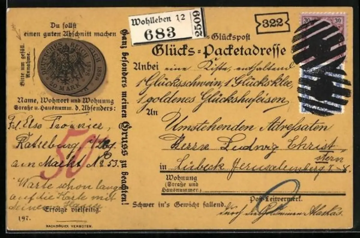 AK 20 Mark des Deutschen Reichs, Glückspost, Geld