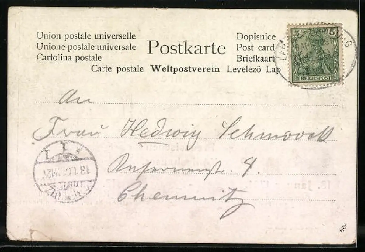 alte Ansichtskarte, gelaufen, Eckknick re. oben, Eckknick u. Einriss re. unten, Bugspur oben mittig