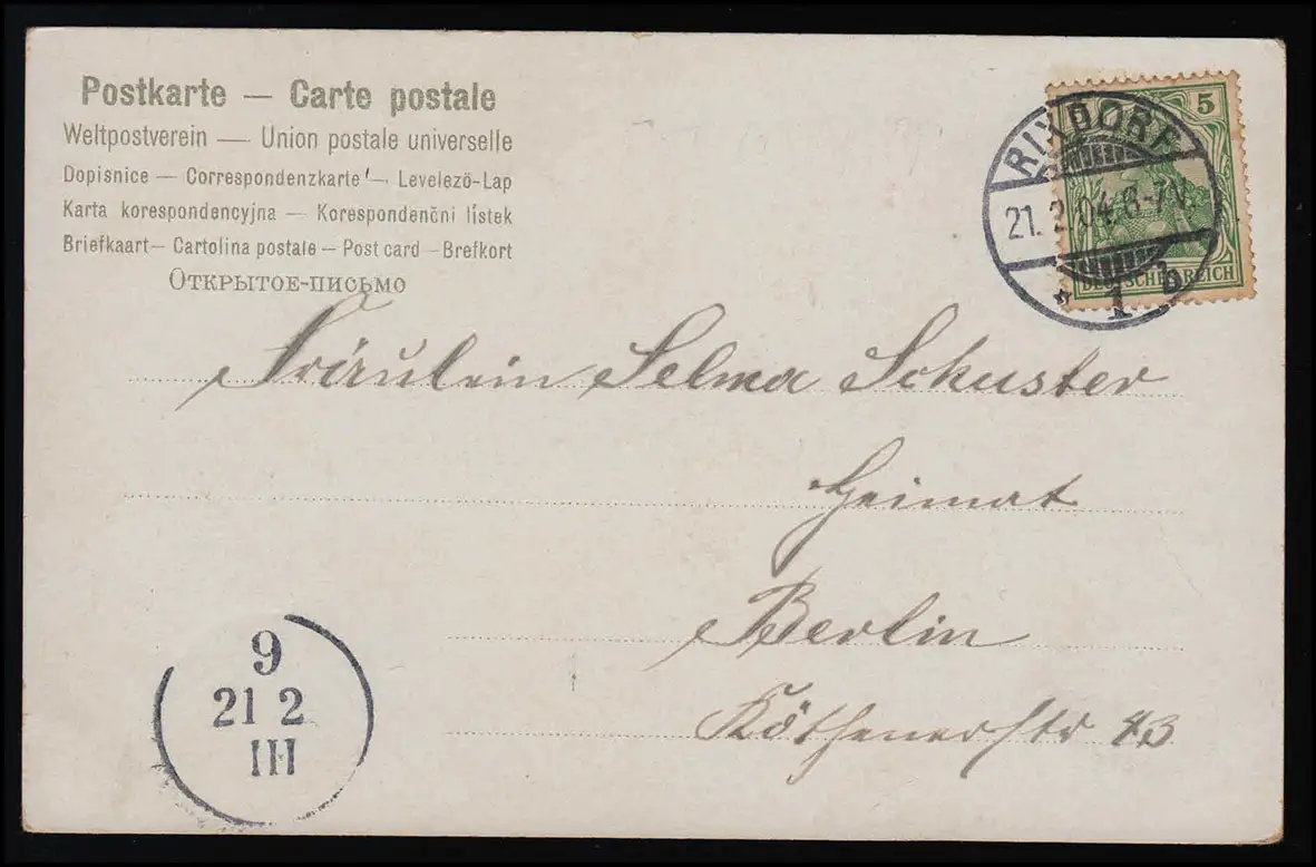 AK 450 Abendstimmung am See, Boot, Weiden, gelbe Blüten, RIXDORF 21.2.1904