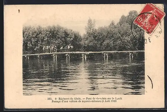 AK 6. Régiment du Génie, Pont de chevalets sur le Louet, Passage d`une voiture de sapeurs-mineurs