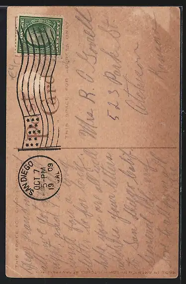 alte Ansichtskarte, gelaufen 1909, rückseitig Oberflächenschaden, Stempelspur, Eckknick re. unten, guter Zustand