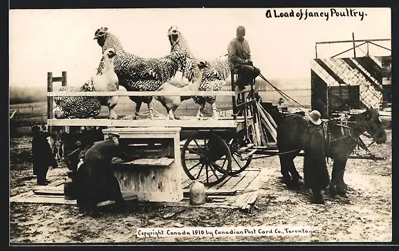 AK A Load of fancy Poultry, riesige kanadische Hühner auf der Waage