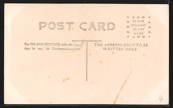 Personenbezogene Daten auf der Rückseite der Karte wurden durch blauen Textmarker unkenntlich gemacht. Die blauen Stellen sind auf die Vorderseite durchgeweicht und wirken sich negativ auf das Postkartenfoto aus