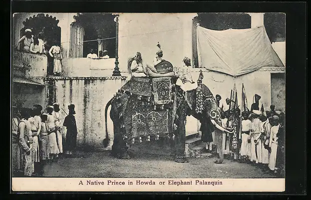 AK A Native Prince in Howda or Elephant Palanquin, ein Prinz auf dem Rücken eines indischen Elefanten