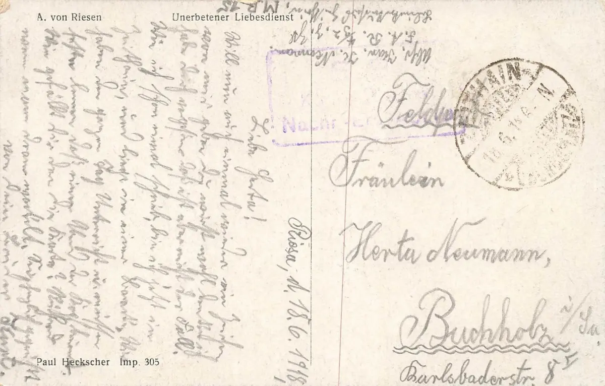 Rückseite: gelaufen 1918