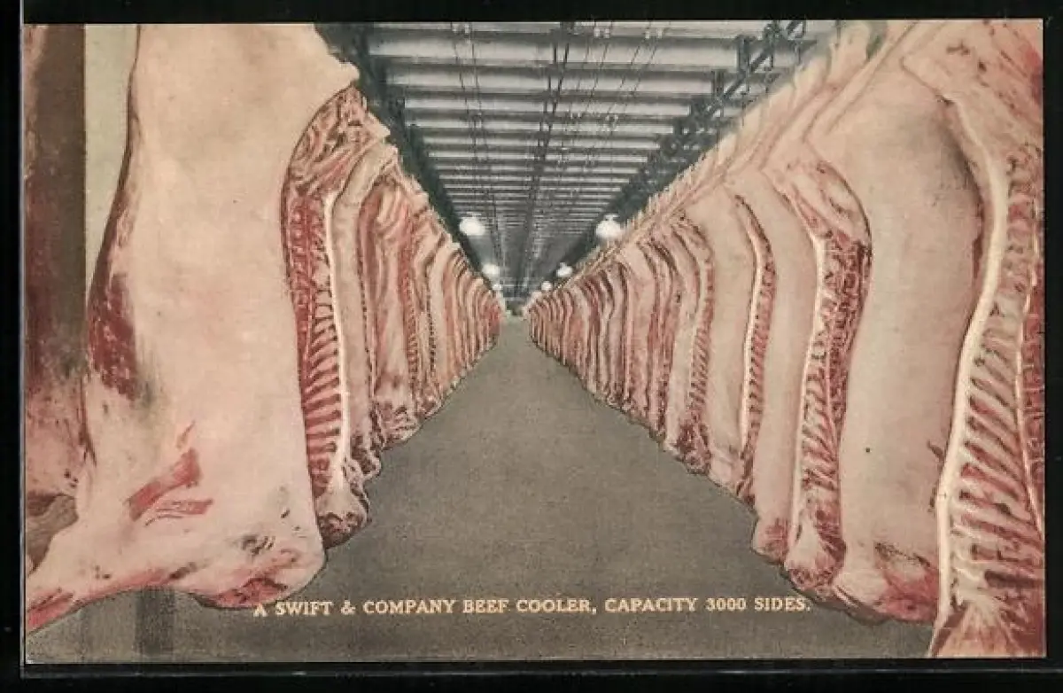 AK A Swift & Company Beef Cooler, Rinderhälften in Kühlhaus