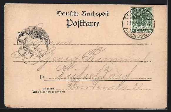 alte Ansichtskarte, gelaufen 1899, Eckknick re. oben, Stecknadelloch re. unten, guter Zustand