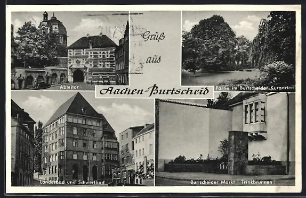 AK Aachen-Burtscheid, Abteitor, Burtscheider Kurgarten, Landesbad u. Schwertbad, Burtscheider Markt