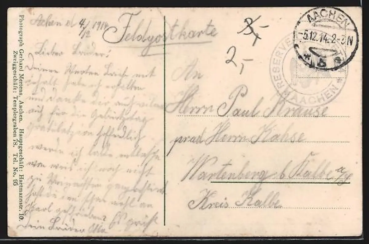 gelaufen 1914, Bugspur oben mittig, guter Zustand