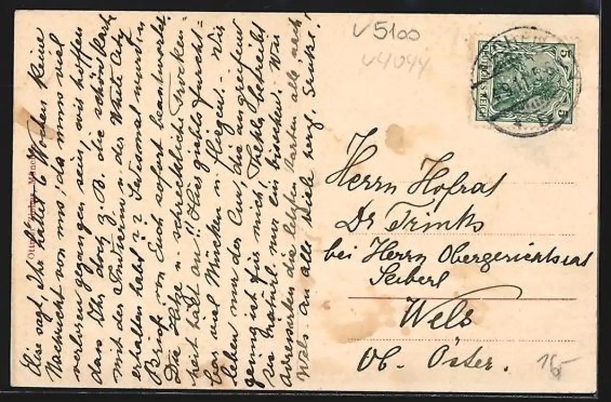 alte Ansichtskarte, gelaufen 1911, Stempelspur, guter Zustand