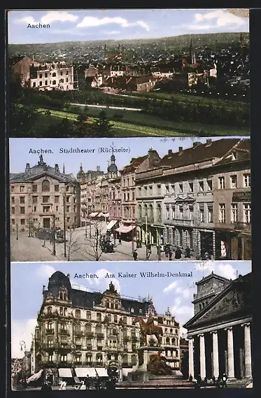 AK Aachen, Gesamtansicht, Stadttheater, Am Kaiser Wilhelm-Denkmal, Strassenbahn