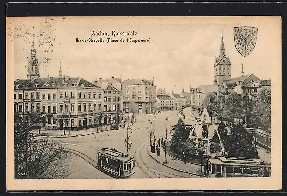 AK Aachen, Kaiserplatz mit Brunnen und Strassenbahn