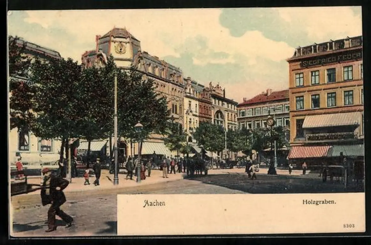 AK Aachen, Strassenansicht Holzgraben mit Passanten